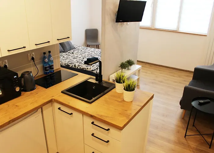 Nestled in the Srodmiescie district, the 1-room Apartament Szczecin Kobalt - Wyzwolenia Apartment is a 20-minute stroll from such cultural places of interest as Letni Theatre.
